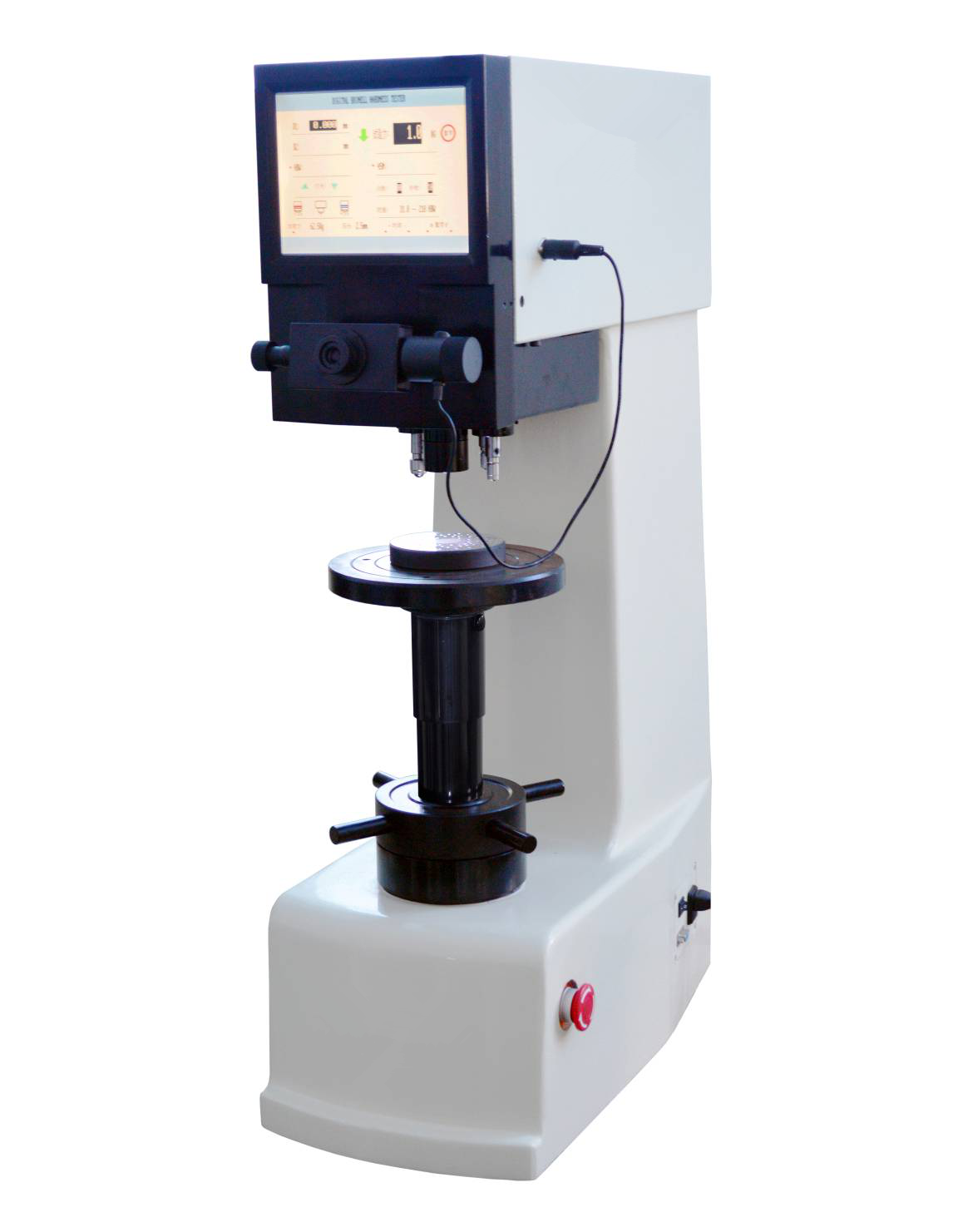 XHB-3000Z II三壓頭自動(dòng)轉(zhuǎn)塔數(shù)顯布氏硬度計(jì)采用精密的結(jié)構(gòu)設(shè)計(jì),試驗(yàn)力施加由力傳感器直接控制,使整機(jī)結(jié)構(gòu)緊湊,加卸試驗(yàn)力平穩(wěn)、準(zhǔn)確。所有參數(shù)由觸摸屏控制及顯示,操作方便。在電氣上由CPU控制試驗(yàn)過(guò)程,物鏡和壓頭間采用自動(dòng)切換,切換定位采用機(jī)械與電子雙重配合,使定位精度更高。本儀器具備10級(jí)試驗(yàn)力,13種布氏硬度的測(cè)試標(biāo)尺,可任意選擇;具備了三組球壓頭和兩組物鏡,都能自動(dòng)參與測(cè)試,物鏡和壓頭間自動(dòng)識(shí)別、自動(dòng)切換;可預(yù)置試驗(yàn)力保持時(shí)間、調(diào)節(jié)測(cè)量壓痕光源的強(qiáng)弱;顯示測(cè)量壓痕長(zhǎng)度、硬度值、測(cè)量次數(shù)等;可選擇各硬度標(biāo)尺之間的換算值;硬度測(cè)試結(jié)果可打印輸出;硬度計(jì)還可根據(jù)用戶特殊需求配置CCD裝置和視屏測(cè)量裝置。